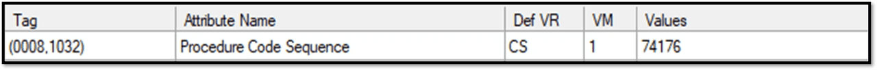 Designed for encoding detailed alphanumeric data, such as procedure descriptions. For example, ‘CT Abdomen Pelvis without contrast' is documented, ensuring clear, precise explanations.